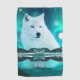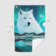 Arctic wolf and magical night with northern lights golf towel