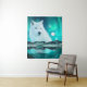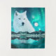 Arctic wolf and magical night with northern lights tapestry