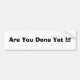 Are You Done Yet !!! Bumper Sticker