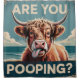 This humourous poster features a close-up of a Highland cow with a contemplative expression. The text "Are You Pooping?" is overlaid in a vintage style, creating a lighthearted and unexpected juxtaposition. This quirky piece of wall art is perfect for adding a touch of humour to any space, especially kitchens or bathrooms.....,