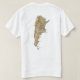 The front of this t-shirt bears a small Argentine flag with its familiar yellow sun over blue and white bands, while the back displays a relief map of Argentina. Available on t-shirts, sweatshirts, polos, long-sleeves and more.