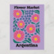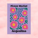 Celebrate the lively and colorful flora of South America with this striking Argentina Flower Market design. This modern illustration features a high-energy arrangement of large, radiant pink blossoms with golden centers, surrounded by a sprinkle of delicate blue-and-white meadow flowers.