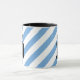 Argentina soccer fan custom jersey number coffee Mug. Blue athletic stripes cup with personalised name and lucky sports number. Cool Birthday gift idea for sporty friends and family.