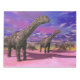 Two argentinosaurus dinausors in a prehistoric wild landscape and colourful sky