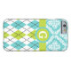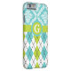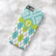 Argyle and damask pattern green, aqua monogram Case-Mate iPhone case