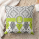 Argyle and damask pattern green, grey monogram cushion