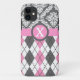 Argyle and damask pattern pink, yellow monogram Case-Mate iPhone case