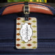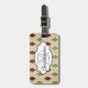 This beautiful luggage tag features an argyle pattern of off white, rust, and green on front and back with a green plaid, with areas you can customise with your name and last name initial as well as phone number or full address.