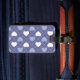 This luggage tag features an argyle pattern of sky blue and white hearts on a navy background on one side and a text template for contact information on the other. Click "Customise" to re-size/re-position argyle heart pattern and/or change background colour. This luggage tag makes a great honeymoon gift.
