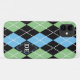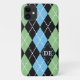 Argyle pattern black, grey and green monogram Case-Mate iPhone case