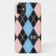Argyle pattern black, grey and pink monogram Case-Mate iPhone case