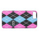 Argyle pattern black, pink, blue monogram Case-Mate iPhone case