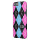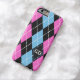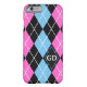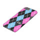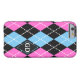 Argyle pattern black, pink, blue monogram Case-Mate iPhone case