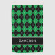 Argyle Plaid Create Custom Name Black Green Golf Towel