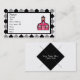 A business card for teachers featuring the logo of The Pink Schoolhouse at right. Border is black and grey argyle. Personalise with your contact info. Opposite side features single black argyle diamond. Customise with your own text (example: Name and Phone# or title.)