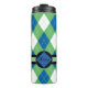 Monogrammed Blue and Green Argyle Pattern