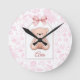 Aria | Custom Pink Teddy Bear Nursery Design Round Clock