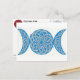 A blue and silver celtic knotwork triple moon. The knotwork on each moon is one continuous path, symbolising the eternal nature of the spirit and the universe.