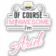 Of Course I'm Awesome I'm Ariel - in mixed black and pink casual and decorative cursive font lettering with whimsical scroll accents and topped with a golden crown.