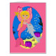 Ariel is an enchanting and magical water creature known as a merfaery (merfairy). Her blonde hair is streaked with pink and is braided into a side ponytail decorated with pink bands. She has a lovely top and magical wings of pink seashells, lovely pink tail and fins, and a pink pearl belt. Ariel the merfaery is petting her dolphin friend and holding a starfish as they play near the sandy golden ocean floor that is decorated with green seaweed plants, red corals, purple sea urchins that blow bubbles, and lovely seashells of white and brown stripes. You can get her on T-shirts, greeting cards, stickers, mugs, and postage stamps.