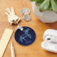 Keychain featuring the zodiac symbol for Aries in soft silver blue, overlaid with the stars of the constellation, against a starry sky background graded from deep midnight blue to black.