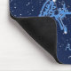 Mouse pad in the zodiac symbol for Aries in soft silver blue, overlaid with the stars of the constellation, against a starry sky background of deep midnight blue