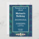 An impressionist painting of the Aries Zodiac sign in blue and green shades with gold nuggets. They are cute party balloons spelling “Happy” on the top and gold confetti randomly displayed on the card. Customise the front card with your picture.
