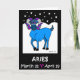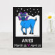 Aries zodiac greeting card that is cute and whimsical. Colourful, fun Aries Ram cartoon.