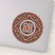 This mandala was designed for the zodiac sign, Aries, depicting a red jasper stone in the centre surrounded by elements representing the sign, such as the symbol for the sign, the constellation, and the alchemical symbol for Fire, as well as filigree vines and weaves wrapping it all into a solid image in shades of red, silver, and brown.