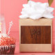 An Aries zodiac symbol on a brown mahogany wood grain style decor print background. A modern urban racy design for a great custom birthday gift idea.