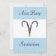 This cute and colourful invitation can be sent as I have made it, for a birthday party for a special Aries person, or whole group of Arian people as a party "theme". Features a colourful Aries sign on the front with a blue and white checked top and bottom and customisable text and of course the reverse of this invitation can be easily filled with your details.