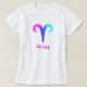 Aries tshirt with purple blue magenta aries zodiac sign on Hanes ladies' comfort Tshirt; other shirt styles such as tank top and jersey are also available; in mens' and kids' styles too. Happy blessings from Happy Wishing Well dot com.