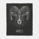 Custom fleece blanket featuring Aries zodiac sign constellation with "Aries" in mystical typography with black background.