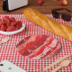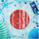 Wiggly stripes and Aries zodiac symbols in shades of red.