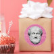 Aristotle sticker Greek philosopher sculpture face on a pink greek key pattern for anyone who loves Greece and Greek Philosophy, Ancient Greece and Classics