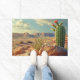 Desert Cactus Flower Southwestern Home Decor Floor Mat. Arizona Desert Landscape Barrel Cactus by Daylight. Desert day time cactus flower front door rug. Customise for your taste. Southwestern images mountain desert striking images of plants, mountain scene. Great image of the Desert of the southwest. You add fonts colorsn and more.