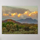 Featured on this poster print is a digital art creation made from an original photograph by Karen Coffelt of a sweeping view of Four Peaks Mountain in the Mazatzal Mountain Range of Arizona with cumulonimbus storm clouds lit up the the setting sun. This view is from Jacob's Crosscut Trail in the Superstition Wilderness near the Lost Dutchman State park in Apache Junction, AZ. This trail is easy to access and easy to hike with a wide variety of Sonoran Desert plants and animals. Customise this with your name or other text using Zazzle's many different font styles and colours. Add one or more of the many fun icons that Zazzle has provided for you or customise it in the design tool by clicking on "click to customise further". Have fun making it your own! If you need any help, please don't hesitate to contact me, and I will be more than happy to assist you. You may contact me at KarenCoffelt@wolfmoonartanddesign.com. Thanks for looking! Original digital art creation copyright 2022 by Karen Coffelt.