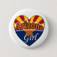 Leuke button met een hart afgebeeld met de Arizona vlag erop. Op de tekst staat: Arizona girl De achtergrond is in de kleur wit. Leuk om te geven als cadeau of voor jezelf om te laten zien dat je trots bent om uit Arizona te komen.