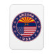 Badge of Arizona with flag of Arizona and flag of USA colors, rounded shape.