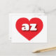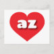 This postcard features a vibrant red heart containing bold, rounded, white lower case letters az, a playful version of the abbreviation for Arizona, the Grand Canyon state. The reverse side of the postcard is blank awaiting your handwritten sentiments or customised text.