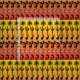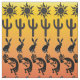 A sunset pattern in bands with a black silhouette pattern of suns, kokopellis, quail, jack rabbits, saguaro cactus, and geckos. Now how much Arizona do you want? I love this joyful southwest pattern.