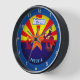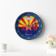 This customisable wall clock features a vintage illustration in red, yellow and blue, inspired by the flag of Arizona. Personalise it today with your own text and turn it on the spot into a memorable souvenir for anyone who loves the Grand Canyon State.