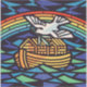 Ark of Noah catholic church stained glass. It is the ship in the Genesis flood narrative through which God spares Noah, his family, and examples of all the world's animals from a global deluge.