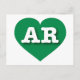 This postcard features a vibrant green heart containing the bold, white, upper case letters AR, the official abbreviation for Arkansas, the natural state. The reverse side of the card is blank, awaiting your handwritten sentiments or customised text.