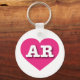 This keychain features a vibrant hot pink heart containing the bold, white, upper case letters AR, the official abbreviation for Arkansas, the natural state.