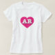 This t-shirt features a vibrant hot pink heart containing the bold, white, upper case letters AR, the official abbreviation for Arkansas, the natural state.