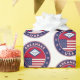 Badge of Arkansas with flag of Arkansas and flag of USA colours, rounded shape.