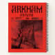 This graphic poster casts Arkham Asylum, the notorious psychiatric hospital from the Batman universe, in a haunting light. The entire scene is bathed in a sinister red hue, enhancing the gothic architecture and barren trees that encircle the asylum, creating a sense of dread and foreboding. The moon glows ominously in the background, illuminating the twisted branches that seem almost to reach out from the darkness. Bold, stylised lettering spells out "ARKHAM ASYLUM" at the top, with a clever tagline "RESTRICTED - Requires Accompanying Hero" that adds a playful yet dark twist to the piece. This artwork brilliantly captures the eerie essence of one of Gotham's most infamous landmarks, making it a striking collectable for fans of the darker side of the Batman saga.