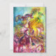 Colourful ,whimsical and vibrant watercolor painting in bright yellow,purple,blue colours inspired from Carnival of Venice .Arlecchina is female counterpart of Harlequin
