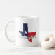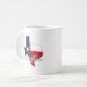 Arlington, Texas flag map coffee mug. This design features "Arlington" in a script, calligraphy style font in white with light grey outline on top of the map of the state that's filled with the flag of Texas. This hometown coffee mug is a great way to enjoy your coffee and to show that you are proud to be from Arlington, TX.